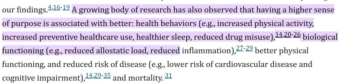 Research tells us that a sense of purpose has far-reaching effects—not just profound psychological effects—but physical ones, too: